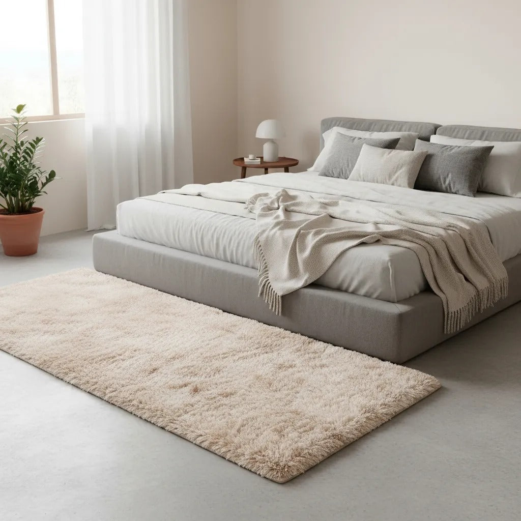 Produzido em 100% poliéster, este tapete felpudo possui pelos altos de até 4 cm, oferecendo uma sensação extra macia e acolhedora sob os pés. Perfeito para começar e terminar o dia com mais bem-estar.